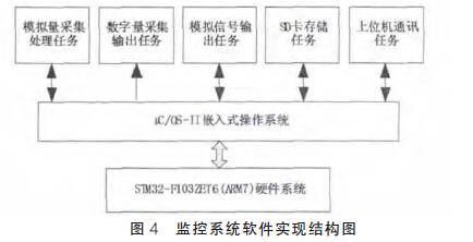 分析本系統軟件設計需求:在對浮子流量計組運行狀態(tài)過程中,通過模擬量的采集和分析對系統進行監(jiān)控,如果發(fā)現某一數據值超過預設值后必須立即處理,與此同時需將信息傳輸至上位機。可見系統對軟件的實時性要求較高, 而且在很短的時間內需要處理的任務較多,普通的前后臺程序難以滿足設計的要求。因此系統軟件選擇帶有操作系統的嵌入式平臺進行開發(fā)和設計。本設計采用基于STM32 的μC/OS-II 對監(jiān)測系統的任務進行調度。