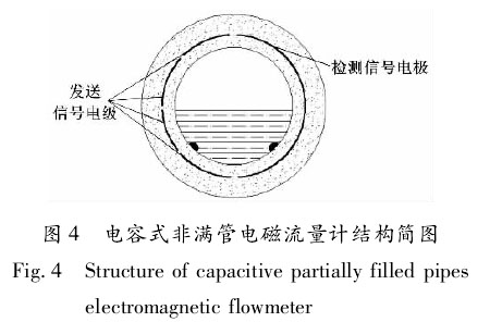 ②電容式非滿管污水廠出水用電磁流量計(jì)h。電容式非滿管污水廠出水用電磁流量計(jì)結(jié)構(gòu)簡圖如圖4所示。、檢測信號電極 發(fā)送信號電