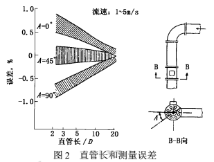 2000年上海原水公司擬在已建成的某泵站加裝DN2200化工生活污水流量計,但彎管下游安裝位置的前直管長度明顯不符合規(guī)定中5D~10D(D為管徑,下同)的要求,此時,影響測量誤差有多大呢?