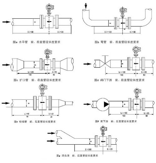2.異徑管需滿足錐度要求。供水流量計的入口與出口的直線管段有長度要求,傳感器前后加接的異徑管,若要視為直管段的一部分,應(yīng)符合產(chǎn)品關(guān)于傳感器前后管段漸擴或漸縮的圓錐角小于15°的要求。因此這種做法必須進行異徑管中心圓錐角計算,如上述DN100供水流量計入口與出口處,依據(jù)《給水排水標準圖集》加工制作的DN150×100的異徑管,其中心圓錐角計算后為11.74°<15°。