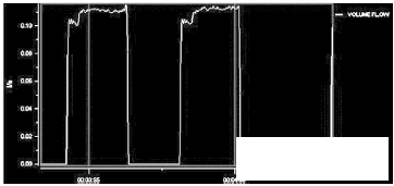 灌裝頭的*終出口部分為10~14mm的可更換縮口。通過(guò)縮口,可以產(chǎn)生背壓,一般縮口內(nèi)置蜂窩狀虹吸管,保證灌裝前后的管道滿管。從測(cè)試的流量波形上看,10mm的灌裝頭產(chǎn)生適當(dāng)?shù)淖枘嵝Ч髁壳€較穩(wěn)定。