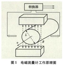 管道地下水流量計(jì)是利用法拉*電磁感應(yīng)定律測量,如圖1所示,用于測量電極與運(yùn)動的流體構(gòu)成的回路中產(chǎn)生的電參數(shù),并根據(jù)公式換算成流體速度,再測量流通截面液位高度得到流通面積,兩者相乘得到所測流量。