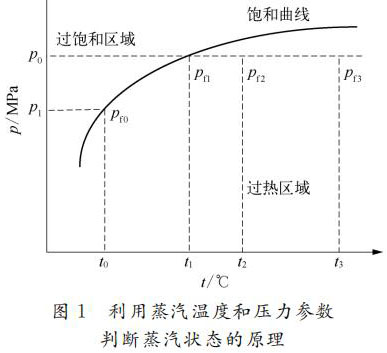 利用蒸汽的溫度壓力參數(shù)自動(dòng)判斷蒸汽處于過熱狀態(tài)還是飽和狀態(tài),原理如圖1所示。關(guān)鍵是判斷蒸汽的溫度壓力值是落在臨界飽和曲線的下方還是上方,如果落在下方,則為過熱狀態(tài);如果落在上方,則為飽和狀態(tài)。
