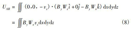 式中V為水泥漿流量計傳感器測量空間;W→為權(quán)函數(shù)。在直角坐標(biāo)系(x,y,z)中,式(5)可以轉(zhuǎn)換為