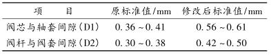 1)由上表可以看出,閥芯與閥套間隙(D1)、閥桿與閥套間隙(D2)明顯小于標(biāo)準(zhǔn)值,導(dǎo)致運行時出現(xiàn)局部卡澀現(xiàn)象。