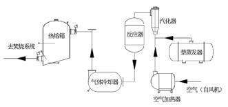 以原料萘為例。萘由原料儲罐經(jīng)液萘泵加壓后進入萘蒸發(fā)器,液萘在萘蒸發(fā)器內(nèi)由中壓蒸汽加熱汽化分離,經(jīng)流量調(diào)節(jié)閥、流量計和氣萘切斷閥后進入汽化器;空氣經(jīng)風(fēng)機加壓后,經(jīng)空氣加熱器加熱后進入汽化器,氣萘和空氣在汽化器內(nèi)混合均勻后進入氧化反應(yīng)器上部,經(jīng)催化床層發(fā)生氧化反應(yīng)生成苯酐和少量的副產(chǎn)物(以順酐、苯甲酸、萘醌、和鄰苯二甲酰亞胺為主);反應(yīng)氣體經(jīng)智能型渦街流量計冷卻后再進入切換冷凝器進行凝華捕集,少量未被捕集的有機物和不凝氣體經(jīng)尾氣管路進入蓄熱焚燒裝置焚燒處理,焚燒后的尾氣達標排放。