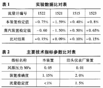 1)對(duì)同一臺(tái)蒸汽流量計(jì)在該裝置上的檢定結(jié)果與蒸汽流量檢定裝置上鑒定結(jié)果的比對(duì)如表1所示。該裝置準(zhǔn)確度為1.25%。表1所列數(shù)據(jù)為誤差*大值。