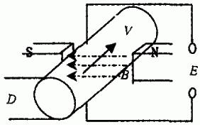 根據(jù)法拉*電磁感應(yīng)定律,即導(dǎo)電液體在磁場中切割磁力線運(yùn)動時(shí),導(dǎo)體中產(chǎn)生感應(yīng)電勢(見圖1),其感應(yīng)電勢的大小與磁感應(yīng)強(qiáng)度、流體做切割磁力線強(qiáng)度等因素成正比。