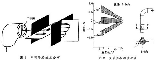 高溫電磁流量計流體流過彎管后,下游產(chǎn)生流速分布畸變,若是兩只鄰近相接的不同平面彎管,除流速分布畸變外還會有漩渦。這些現(xiàn)象要影響裝在下游的大部分類型流量儀表(除容積式等少數(shù)類型外)的測量值,因此通常要求在流量儀表安裝點之前有一定長度直管段,改善進入儀表的流動狀況。高溫電磁流量計受彎管影響較小,直管長度要求也遠低于節(jié)流差壓式、渦街式等其他流量儀表。但是當前高溫電磁流量計精度為測量值的0.5%,甚至0.2%~0.4,即使影響量較小,還是受到人們的關注。