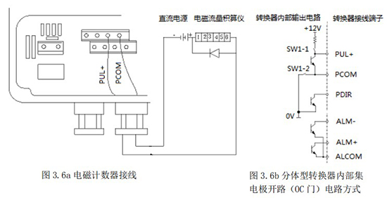 頻率(脈沖)、上下限報(bào)警、流向標(biāo)示等輸出均為集電極開路的電平輸出信號(hào)。