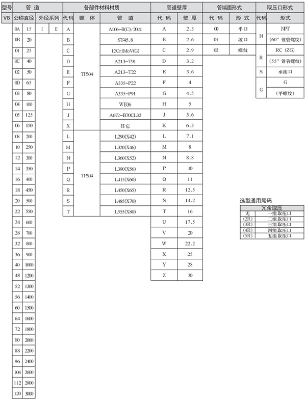 總長(zhǎng)度允許誤差范圍:φ114.3-273,±4mm;DN323.8-610,±6mm;DN660-1524,±7mm。長(zhǎng)輸管道公稱直徑從“4 1/2~60”,只有一個(gè)外徑系列,故選項(xiàng)時(shí)不選外徑代碼。