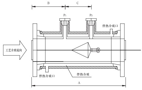 專門為測(cè)量要求夾套管伴熱工藝介質(zhì)的流量而設(shè)計(jì),特別適合易結(jié)晶介質(zhì)及溫控要求嚴(yán)格的場(chǎng)合。鋼制夾套管法蘭標(biāo)準(zhǔn):SHT501-1997。