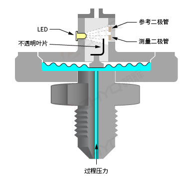 光學(xué)傳感器使用玻璃纖維來(lái)傳輸光束。該光束的特征在于強(qiáng)度、頻率、相位和偏振等參數(shù)。當(dāng)玻璃纖維承受過(guò)程壓力時(shí),這些參數(shù)中的一個(gè)或多個(gè)將發(fā)生變化。這些參數(shù)的變化是所測(cè)壓力的量度。