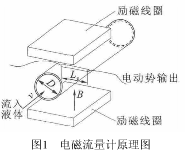 如圖1所示,某一時(shí)刻由一對勵(lì)某一時(shí)刻由一對勵(lì)磁線圈產(chǎn)生的磁感磁線圈產(chǎn)生的磁感應(yīng)強(qiáng)度B,方向向上,流入液體的速上,流入液體的速度為v,管的直徑管為D,兩極的距離為Le,兩極間電動(dòng)勢,兩極間電動(dòng)勢ε正比于磁感應(yīng)強(qiáng)度正比于磁感應(yīng)強(qiáng)度B、流速v和兩極間的距離Le,即: